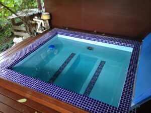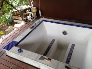 SPA PAINTED WITH BONDI MID BLUE It looks outdated and needs good attention Ready to be painted Painted and filled, this Spa now looks great!